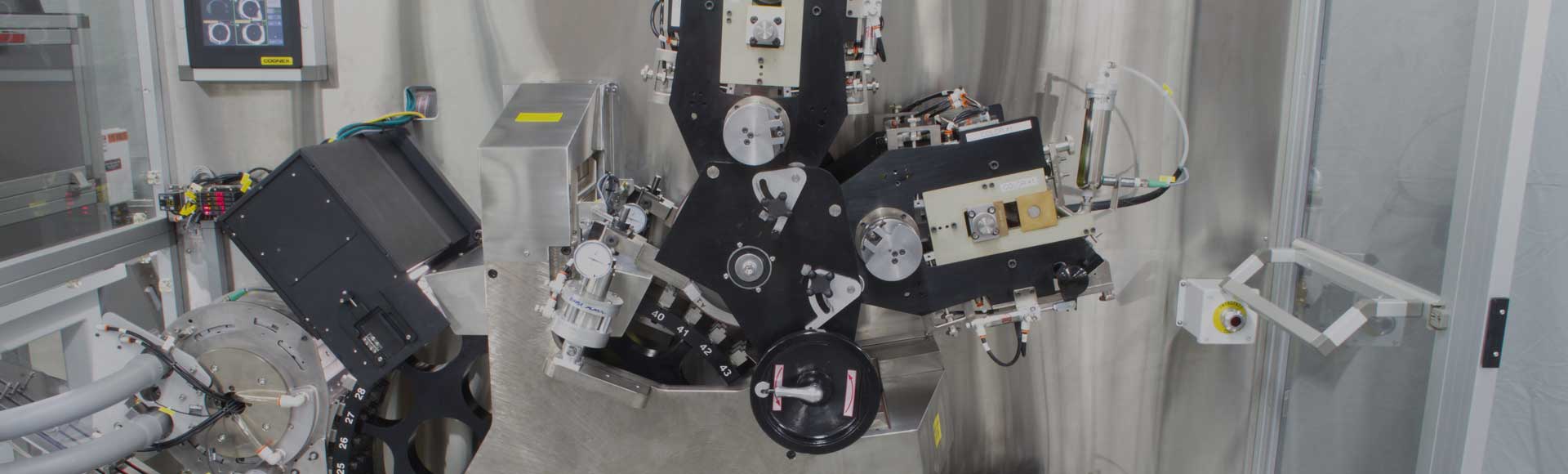This machine is designed so that parts can be manually loaded onto mandrels located on a four or eight station rotary index wheel. On a four mandrel index wheel, the load mandrel is also the exit mandrel. An optional automatic eject can be added to the eight mandrel system. The C-40 can also be supplied with part or full automation for higher speed operation.